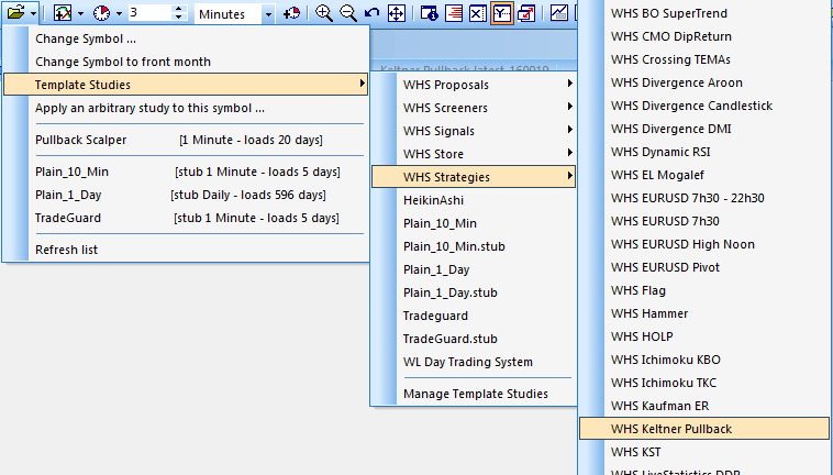 La stratégie Keltner Trend Pullback s’utilise avec des graphiques en 5 minutes ou moins. Le nombre de signaux est néanmoins tout à fait gérable. Cette stratégie de trading gratuite se trouve dans le fichier WHS Strategies sur NanoTrader.